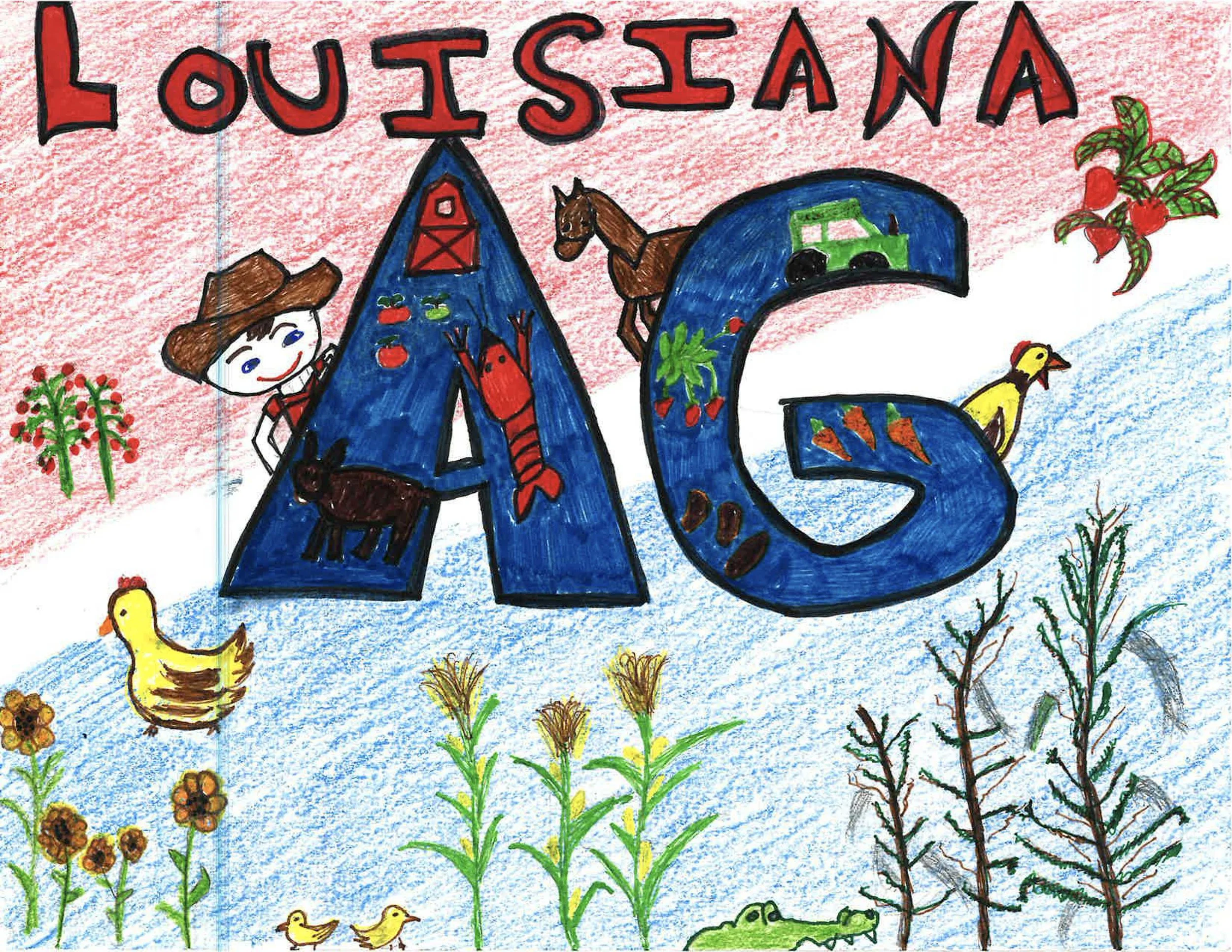 3rd - 8th grade students across the state participated in Louisiana Ag Week by competing in an art contest for a chance to win cash prizes. They expressed their unique perspective on ag through drawing and painting an original work of art inspired by Louisiana agriculture. Congratulations to our winners!