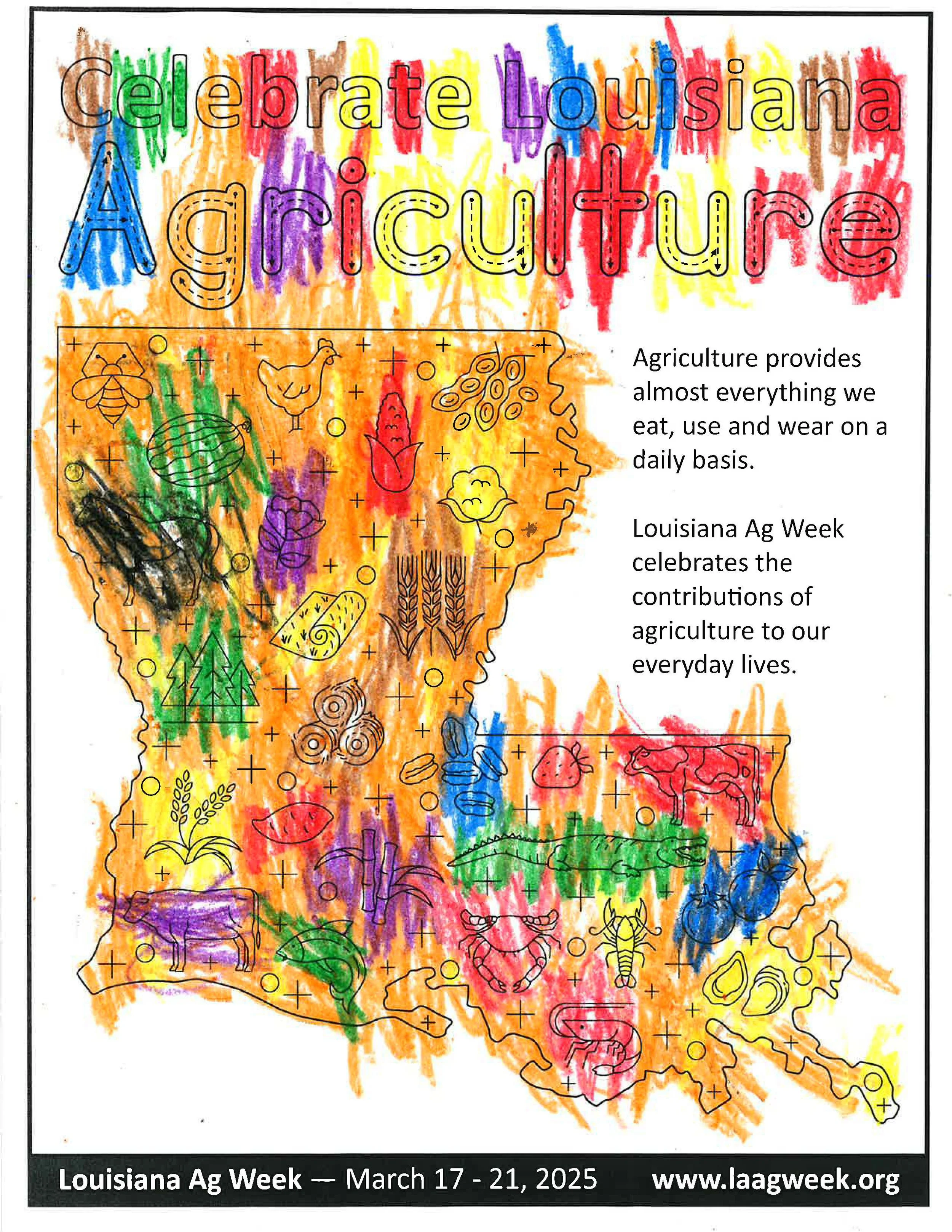 Participate in Louisiana Ag Week by coloring your way through Louisiana agriculture. Color your favorite Louisiana commodity coloring sheet and learn where your food, fuel and fiber come from.