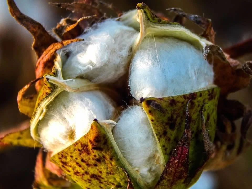A cotton boll bursting open reveals the soft, white fibers that have made cotton one of the most important crops in Louisiana agriculture.