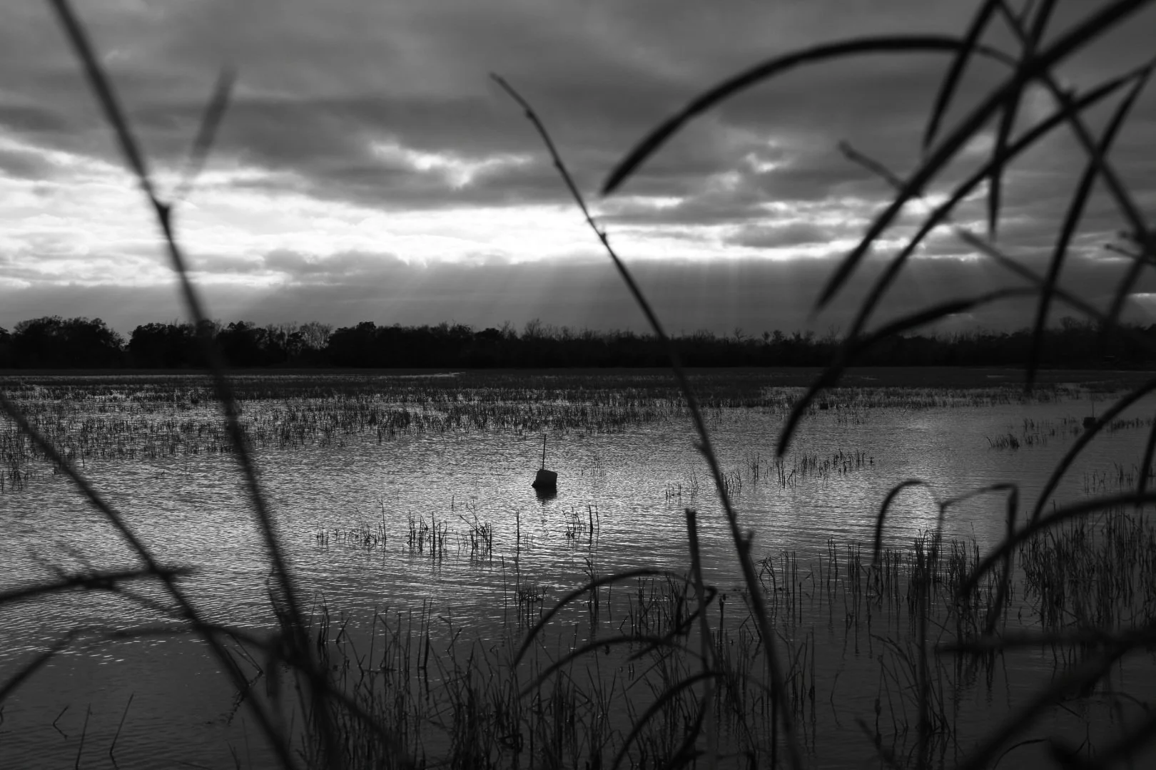 Riding the levee on a Sunday afternoon, checking on a crawfish pond in Forked Island, Louisiana, with the sunshine peeking through the clouds.